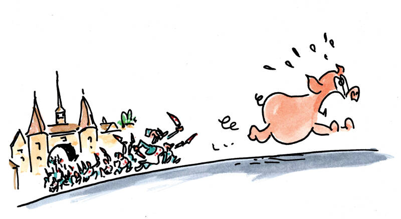 Comme s'il avait eu cent bouchers à ses trousses.."
