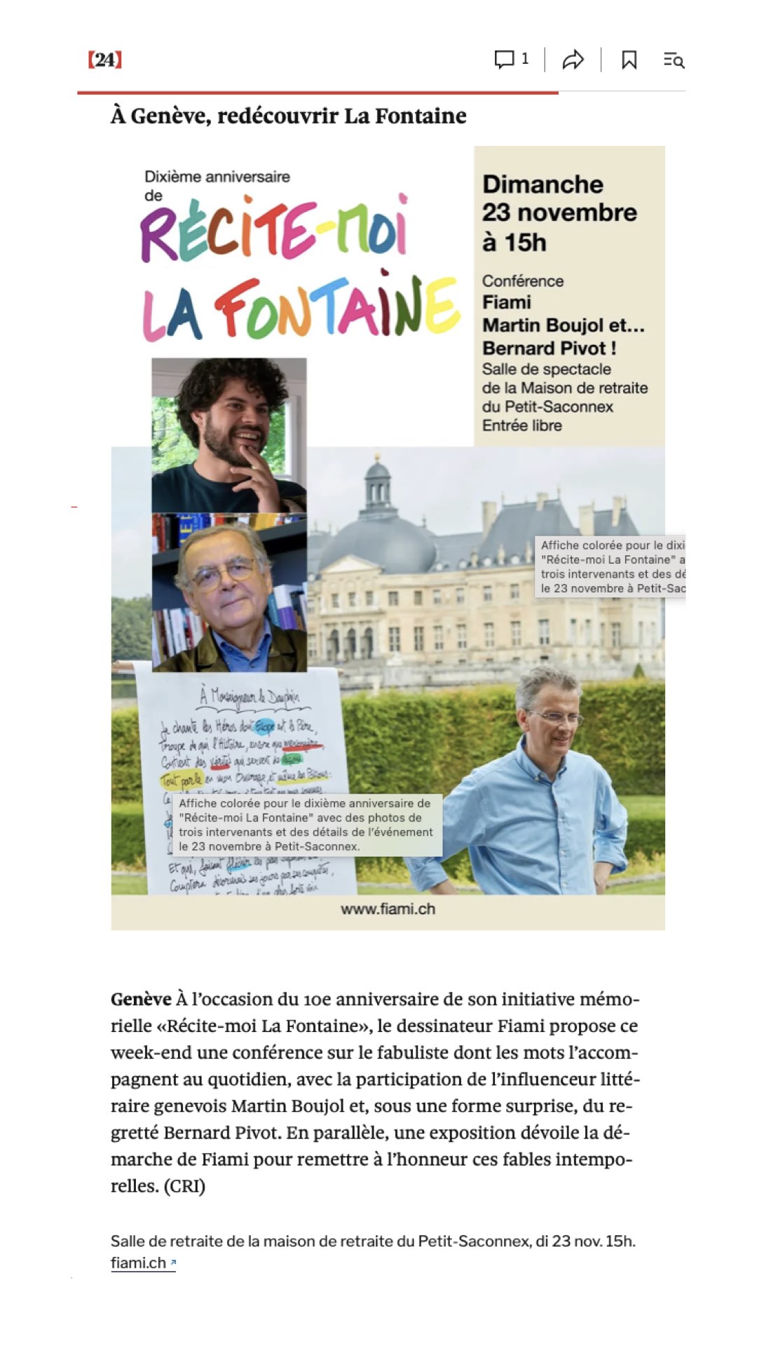 - RTS 19h30 Fiami auteur de Récite-moi La Fontaine