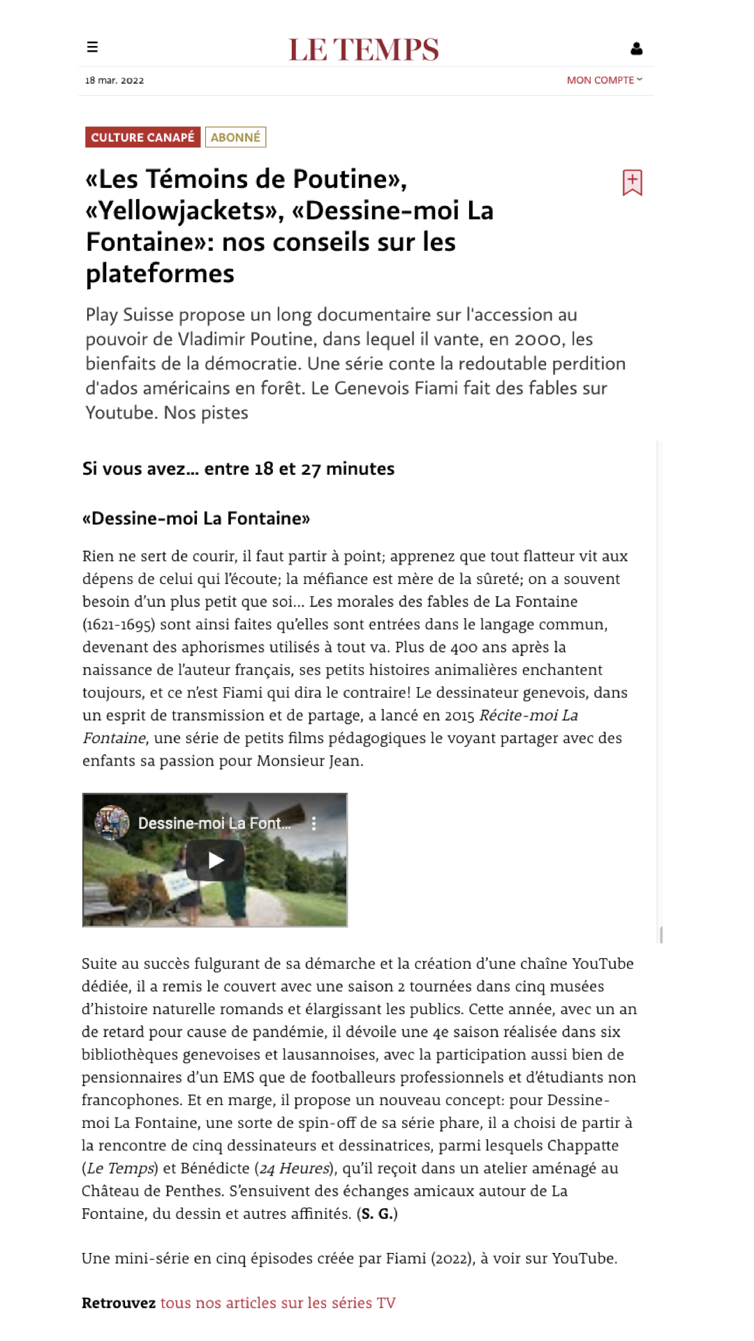 - Le Temps «Dessine-moi La Fontaine»: nos conseils sur les plateformes